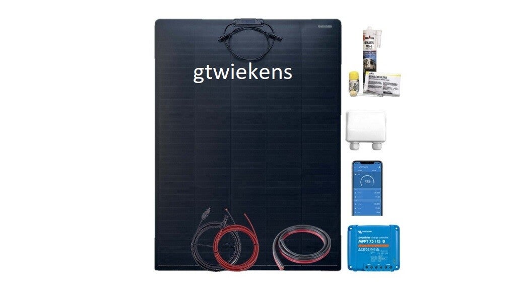 Hoogwaardige Bente solarset 1x180Watt semi-flexibel paneel + Victron smart mppt 75/10 complete set.